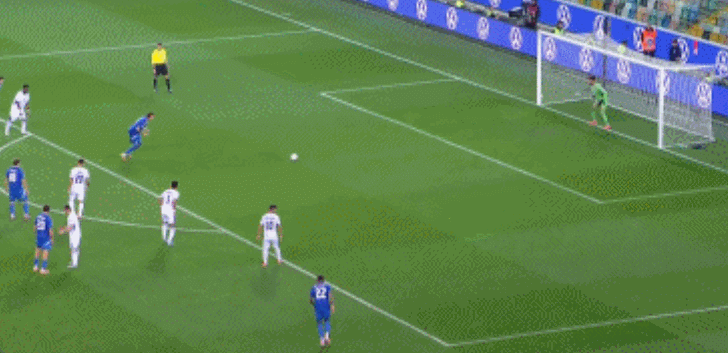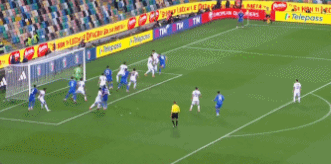 回到主场比赛,意大利控制了局面,开场之后多次打门无功而返,包括雷特吉禁区内低射打门偏出,坎比亚内切打门稍稍偏出,直到上半场补时阶段打破了僵局,雷特吉创造点球且亲自主罚命中,帮助意大利1-0先下一城。