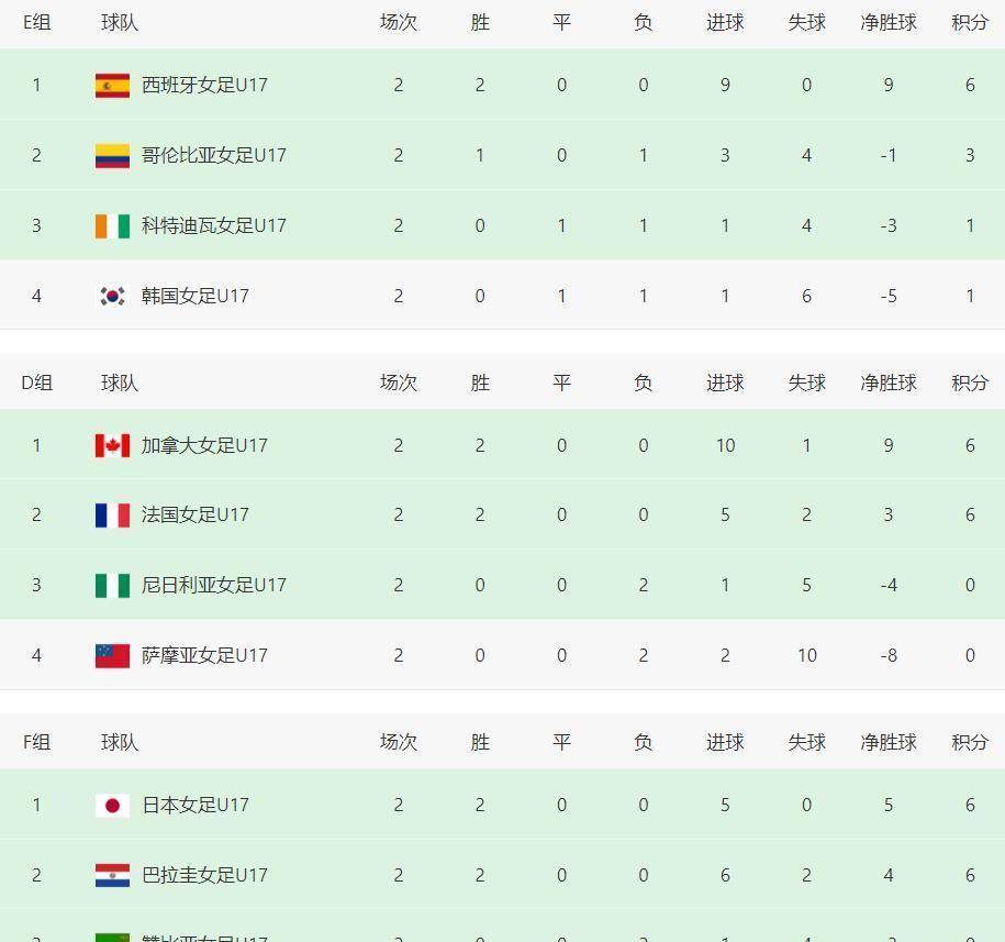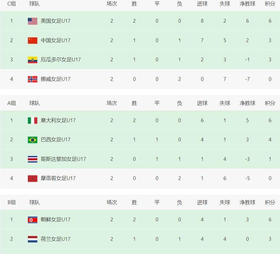 然而,随着小组赛第二轮全部结束,一个意想不到的局面出现了:中国U17女足即使在最后一轮输给厄瓜多尔,也极有可能以“成绩最好的四个小组第三”之一,历史性地首次闯入该项赛事的淘汰赛阶段。