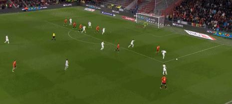北京时间11月19日,世预赛欧洲区小组赛中,西班牙对阵土耳其。比赛中,奥尔莫率先破门,但随后居尔为土耳其扳平比分,半场结束时双方战成1-1平。下半场开始后,厄兹詹远射得手,将比分改写为2-1