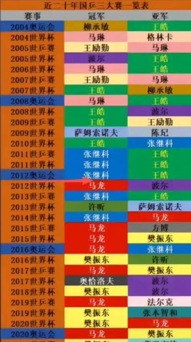 ??2007年的世乒赛,他止步16强。之后的2009、2011、2013年三次世乒赛,全部在半决赛输给同一个人——王皓。三届铜牌的挫败感在心里扎下了根。同时期,同龄的张继科却在伦敦周期直线年便拿下大满贯。马龙的世界排名曾到过第二,但奥运单打资格依旧和他无缘。