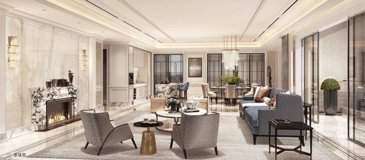 复刻纽约华尔道夫酒店装饰艺术精髓,10米挑空大堂、拱门架构恒温泳池、艺术展廊、名家真品陈列,让日常起居同步国际顶级酒店体验。