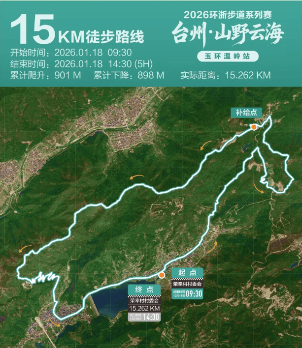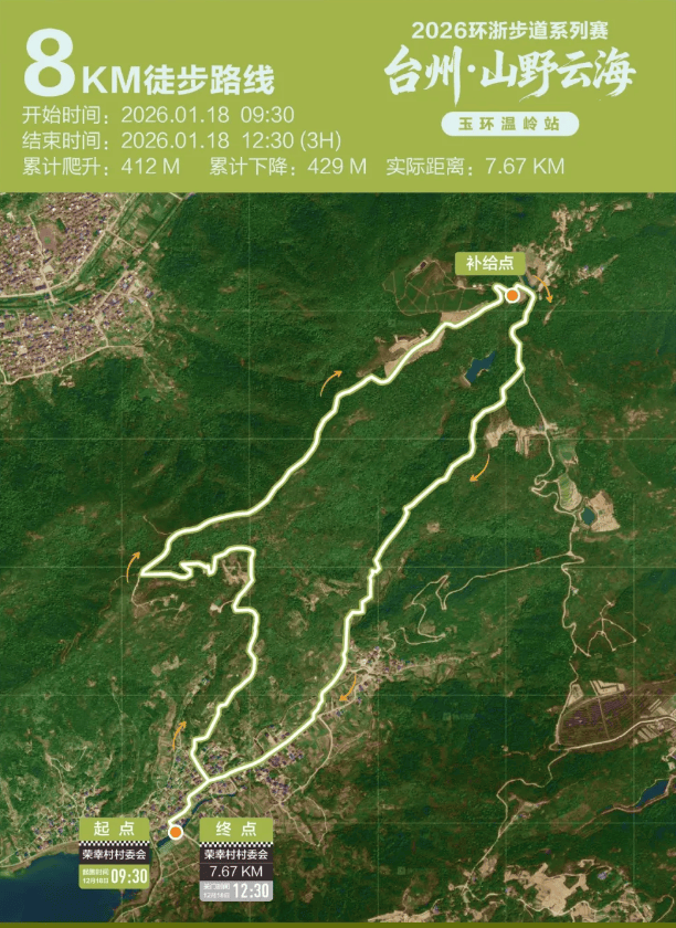 :荣幸村村委会(起点)-新屋里-上山头-大雷头路廊(补给点)-岙底张-小路村-荣幸村村委会(终点)